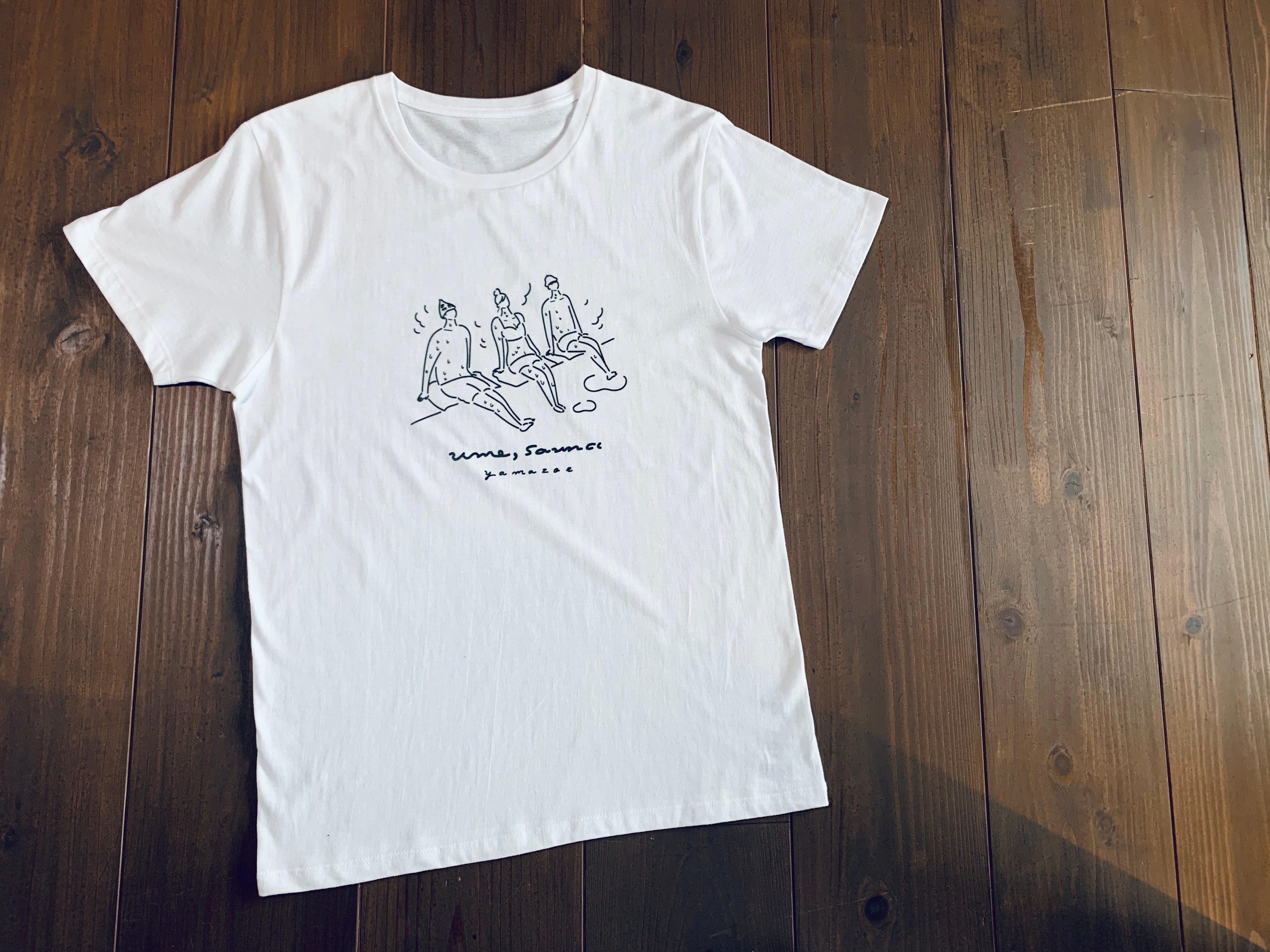 ume,yamazoeのサウナume,saunaのロゴとイラストをモチーフにしたTシャツシリーズ